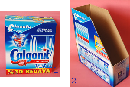 Kullandığım deterjanın bu kutusunun ise boyutları ve sağlamlığı sebebiyle magazinlik için çok uygun olabileceğini düşündüm. Deterjan kutusunu bile atarken düşünüyoruz, durum vahim değil mi?